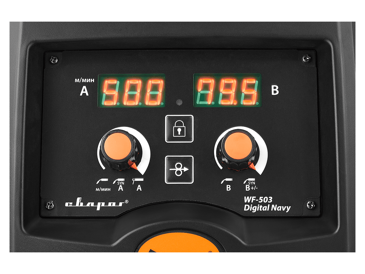 - Индикатор параметров скорости подачи сварочной проволоки
